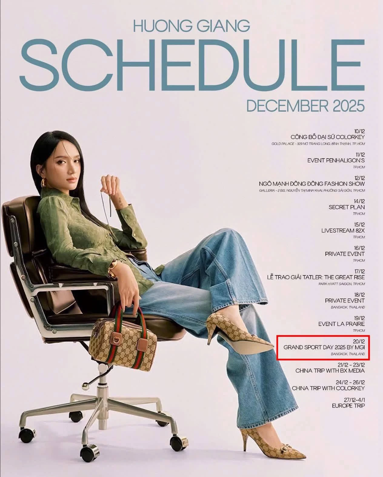 Huong Giang's December schedule is becoming a hot topic of discussion online after the beauty queen unexpectedly confirmed she will be going to Thailand to attend an event organized by Miss Grand International.