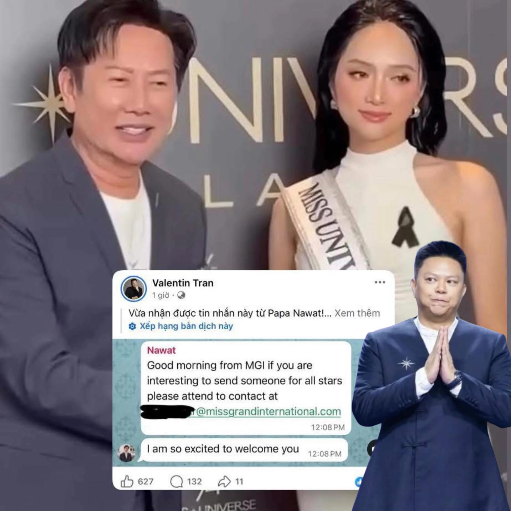 Furthermore, the MGI chairman is also said to have sent a private message to Valentin Tran – President of Miss Universe Vietnam – inviting the Vietnamese representative to participate in Miss Grand All Star. This move further strengthens the belief among beauty pageant fans that Nawat's target is Huong Giang. The fact that he chose to contact the head of MU Vietnam, an organization closely associated with Huong Giang in the past, further reinforces this suspicion.