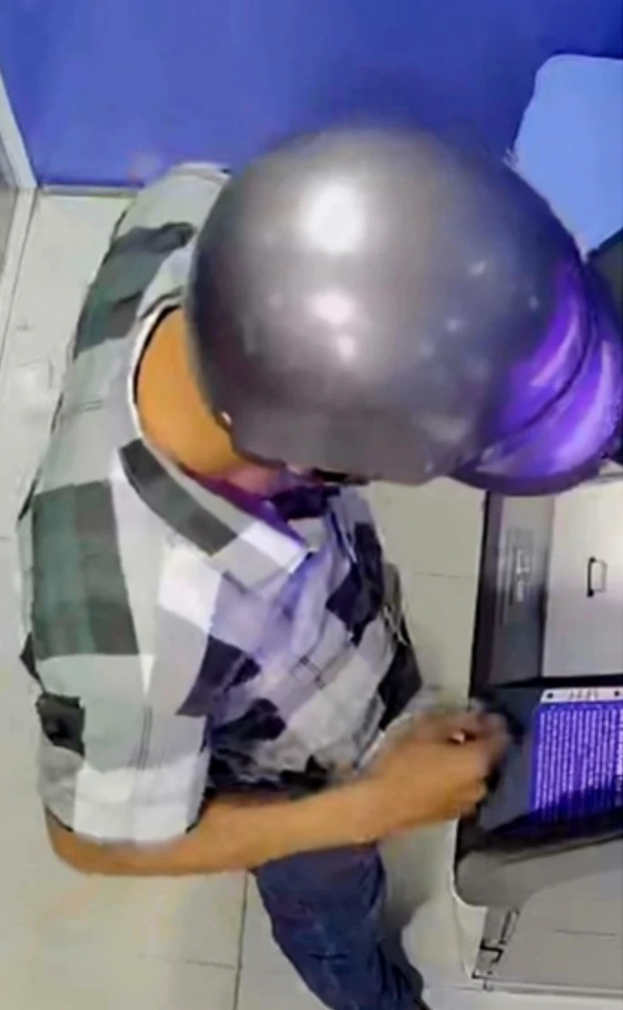 According to footage extracted from security cameras at the scene, the suspect is a man riding a motorcycle and wearing a striped shirt. The images show him quickly taking the money and leaving the ATM area in a hurry. Currently, the video from the scene camera has been seized by the police to aid in identification and investigation.