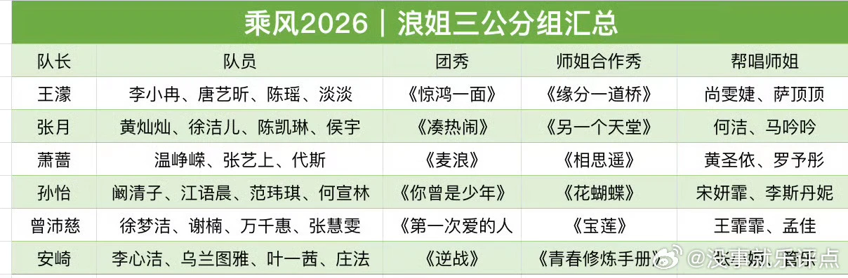 Theo những thông tin lan truyền, đội hình mới của Trang Pháp được cho là sẽ kết hợp cùng An Kỳ (đội trưởng), Ô Lan Đồ Nhã, Lý Tâm Khiết và Diệp Nhất Thiến. Đây đều là những gương mặt có kinh nghiệm biểu diễn và được đánh giá cao về thực lực, khiến nhiều khán giả kỳ vọng đội hình này sẽ tạo nên một tiết mục bùng nổ trong vòng thi tiếp theo.