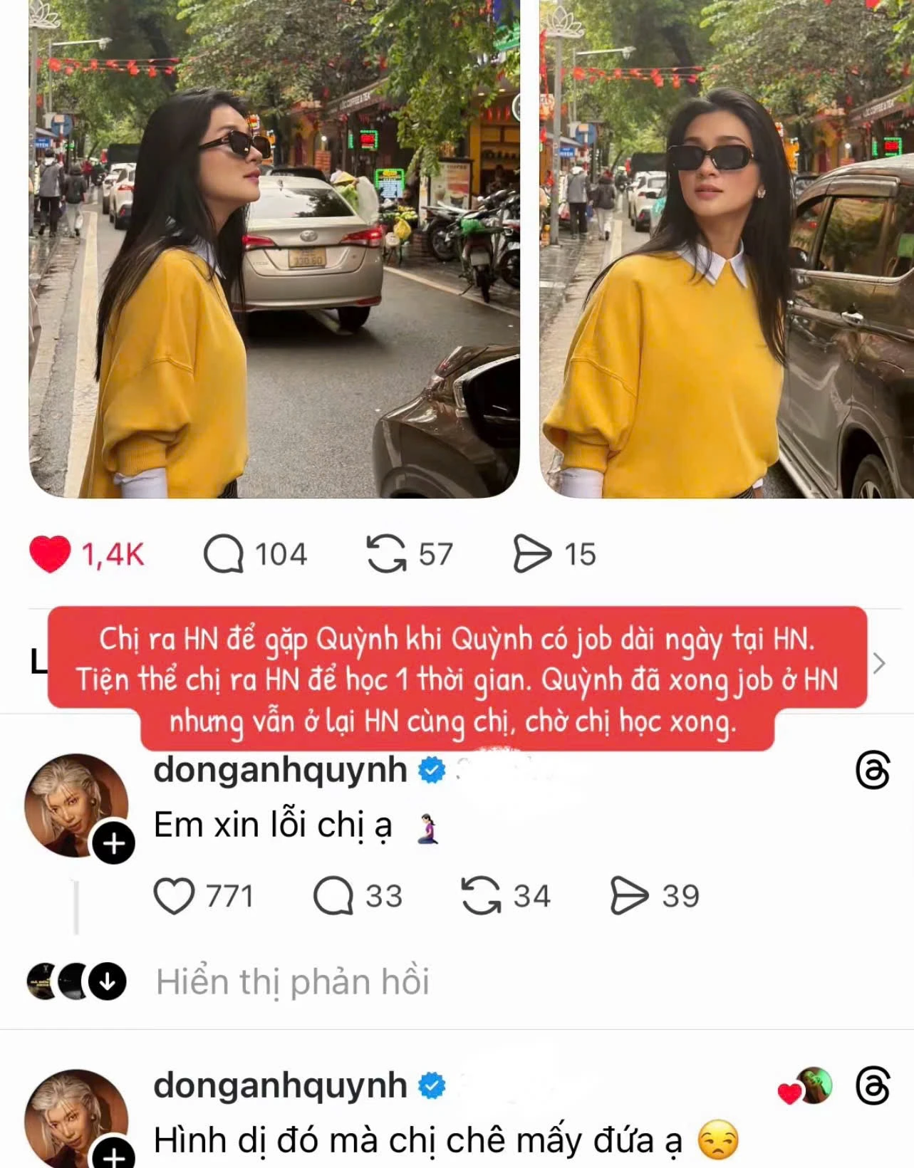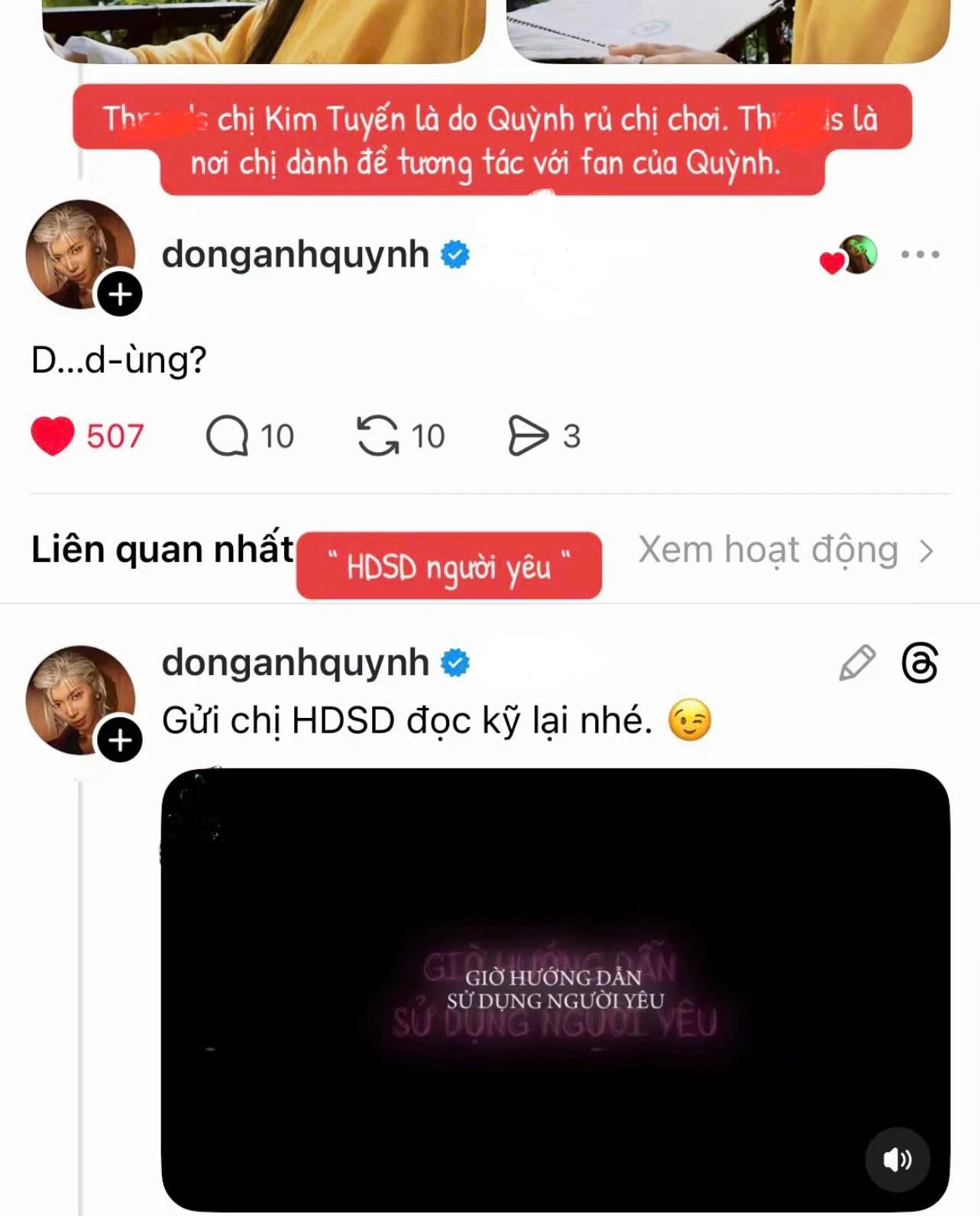 A clip circulating online also shows Dong Anh Quynh taking care of her senior quite attentively, even at one point feeding Kim Tuyen cake spoon by spoon. These actions are considered by many to be "more than friendship", thereby creating countless debates. However, there are also opinions that the two are simply close and care for each other in the way of sisters in the art world, where taking care of each other, teasing, and interacting excessively is not uncommon.