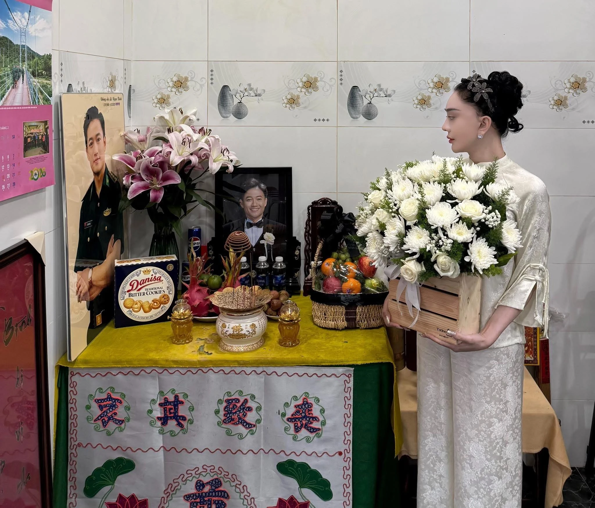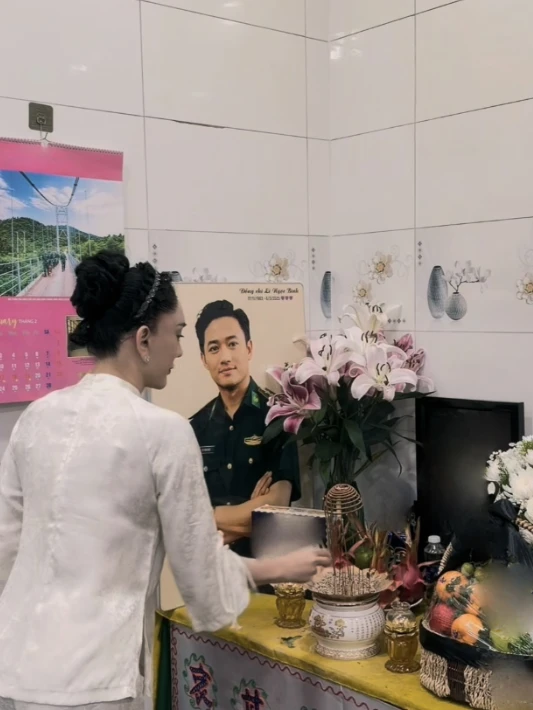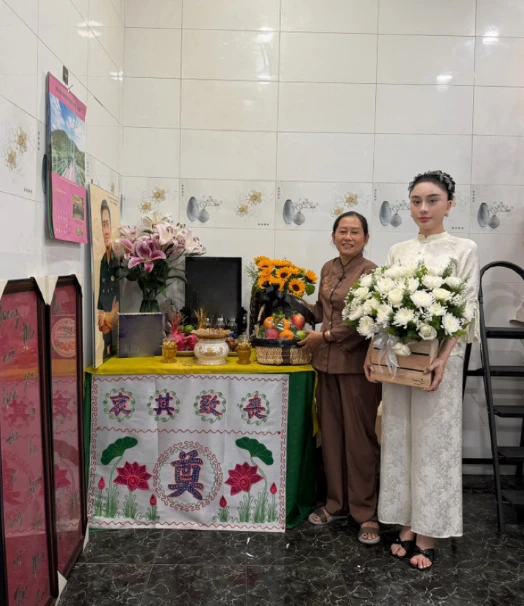 Recently, the female singer shared a series of photos from her visit to pay respects to the late artist in Hoc Mon, Ho Chi Minh City. In the posted photos, she appears in simple attire, quietly standing before the altar of her former close colleague. Without fanfare or ostentation, this solemn moment quickly moved the online community, as it showed the sincere grief she felt for the deceased.