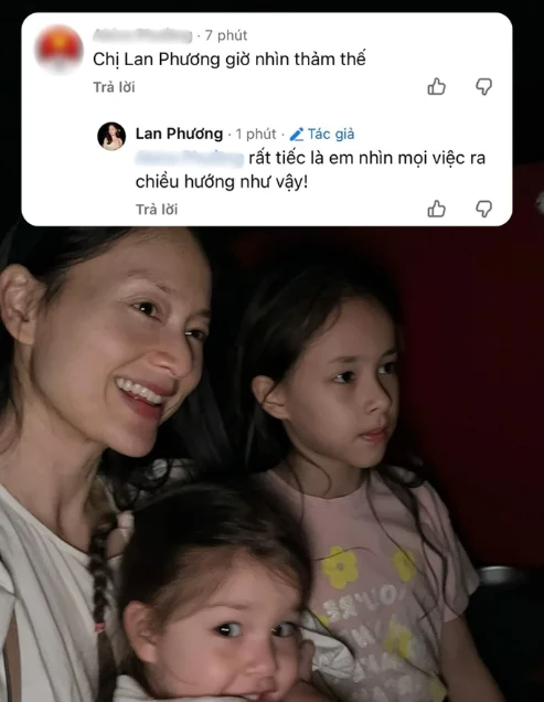 Mới đây, nữ diễn viên Lan Phương trở thành tâm điểm chú ý khi chia sẻ khoảnh khắc đời thường bên hai con gái tại rạp chiếu phim. Trong ảnh, cô xuất hiện với vẻ ngoài giản dị, mặt mộc không chút phấn son nhưng nụ cười lại toát lên vẻ rạng rỡ, hạnh phúc. Tuy nhiên, bên cạnh những lời khen ngợi, một bình luận kém duyên từ cư dân mạng đã gây xôn xao: "Chị Lan Phương giờ nhìn thảm thế".