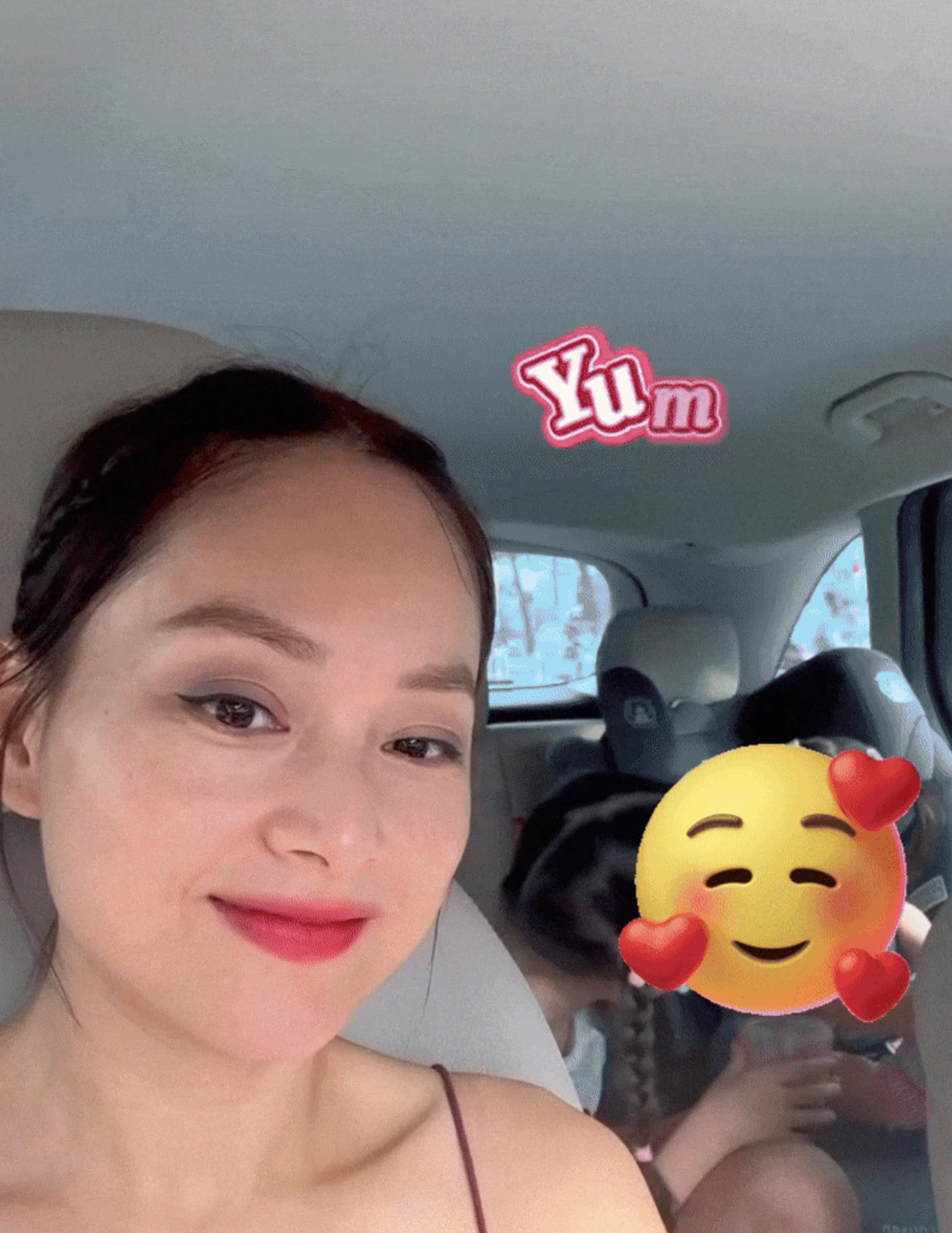 Trên trang cá nhân, Lan Phương viết: "Có những ngày mẹ để cô giúp việc nghỉ, chỉ có 3 mẹ con bên nhau. 3 mẹ con đi chơi, tự chăm sóc nhau, Lina chủ động chăm em, còn Mia thì vô cùng hạnh phúc khi có chị bên cạnh. Một mình với hai con, đủ thứ phải xoay xở, nhưng đến cuối ngày nằm ôm con cảm thấy mọi thứ đều xứng đáng".