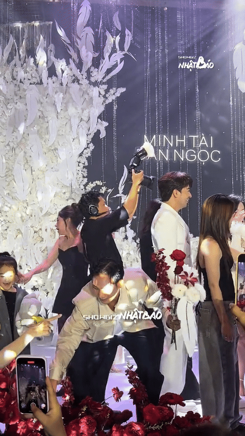 Bên cạnh đó, tiệc cưới còn gây chú ý bởi sự góp mặt của nhiều nghệ sĩ quen mặt. Một chi tiết khiến mạng xã hội bàn luận là khoảnh khắc diễn viên Thanh Thức tham gia bắt hoa cưới. Hình ảnh anh hào hứng đón bó hoa, sau đó nhặt những cành hoa rơi trên sân khấu được lan truyền, tạo không khí vui vẻ và mang tính giải trí cho buổi tiệc. Đây chỉ là một tình huống ngẫu nhiên trong phần giao lưu nhưng lại trở thành điểm nhấn được nhiều người chia sẻ.
