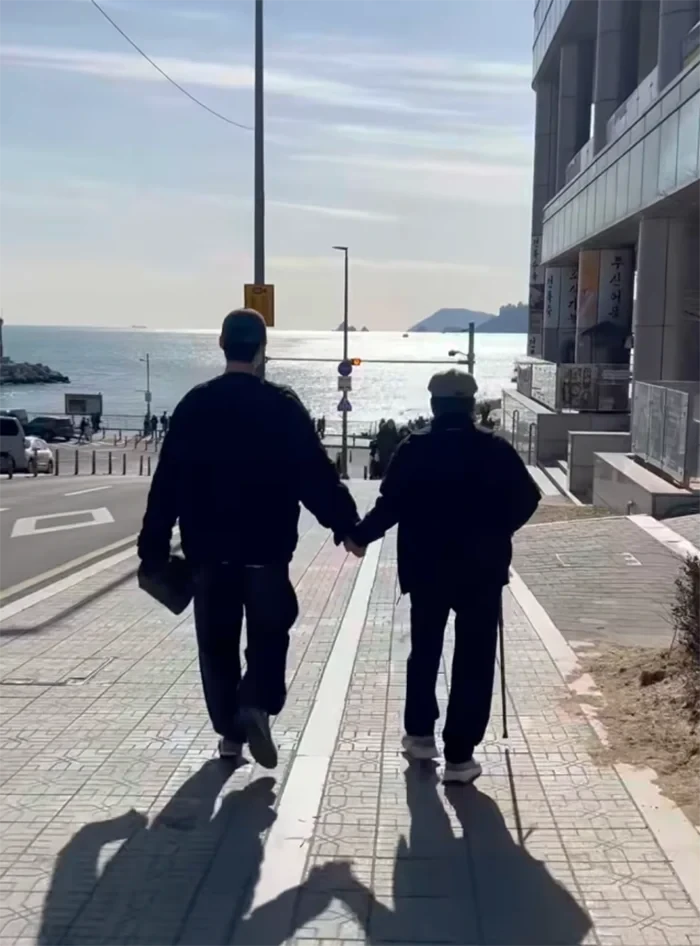 Mới đây, trên trang cá nhân, Lee Jong Suk đã đăng tải một loạt ảnh mà không kèm theo bất kỳ dòng chú thích nào. Thế nhưng, ngôn ngữ của hình ảnh đã thay lời muốn nói, chạm đến trái tim của hàng triệu người hâm mộ. Tâm điểm của bộ ảnh là khoảnh khắc nam tài tử nắm chặt tay ông nội đang chống gậy, cùng nhau chậm rãi bước đi trên bờ biển.