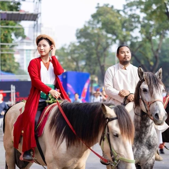 Bach Hoa is happy to have a parade route through central streets such as Hang Dau, Trang Tien, Hang Khay and around Ho Kiem before returning to the main stage. In the chilly evening of Hanoi, the flow of people in ancient costumes, ao dai and innovative costumes creates a brilliant scene like a restored slice of culture.