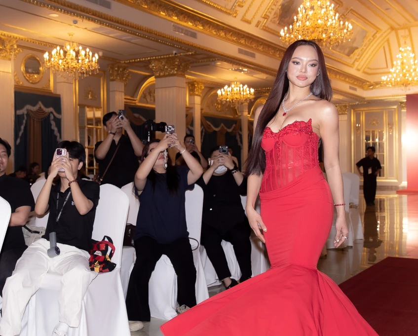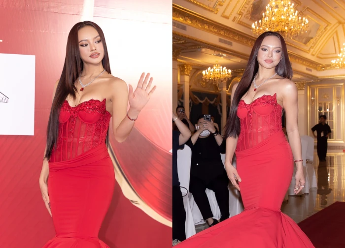 Among the 39 international contestants, all attention quickly turned to the host country's representative - model and Miss Media Mai Ngo. Appearing in a tight-fitting, strapless evening gown, Mai Ngo successfully showed off her curves. However, this outfit highlighted her somewhat fuller figure compared to her previous sharp images, making her the center of discussion right at the event.