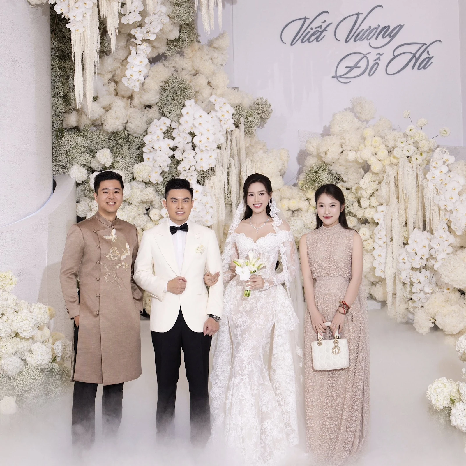Tại tiệc cưới của Hoa hậu Đỗ Thị Hà và doanh nhân Viết Vương diễn ra ở Hà Nội, Khánh Vy xuất hiện rạng rỡ trong bộ váy trắng thanh lịch. Tuy nhiên, điều khiến khán giả chú ý không chỉ là trang phục hay thần thái của nữ MC, mà là người đi cùng cô — một chàng trai lạ mặt diện đồ ton-sur-ton, luôn sát cánh bên cô trong suốt buổi tiệc.
