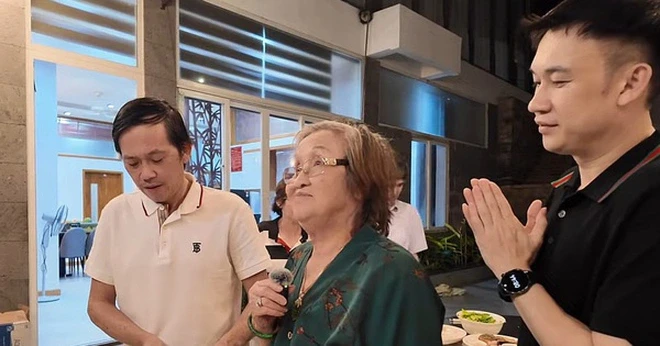 Những lời nói đầy cảm xúc của mẹ khiến Hoài Linh lặng người. Nam nghệ sĩ vốn trầm lặng, ít bày tỏ cảm xúc nếu không đứng trên sân khấu, nhưng hôm ấy, sự xúc động hiện rõ trên gương mặt anh. Anh đứng cạnh mẹ, chăm chú lắng nghe, mắt rưng rưng trước tình cảm trân trọng và đầy yêu thương từ mẹ và các anh em.