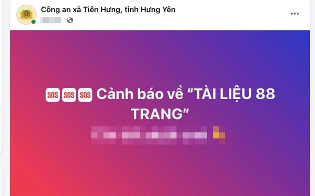 Công an xã Tiên Hưng, tỉnh Hưng Yên vừa phát đi cảnh báo khẩn cấp đến người dân liên quan đến " Tài liệu 88 trang " đang xuất hiện dày đặc trên mạng xã hội .