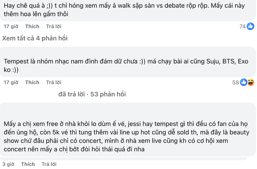 In just a few hours, underneath the post became a miniature "battlefield": the faction supporting TEMPEST for Hanbin; opposed because of expectations for A-list stars; The neutral side thinks that this is a miss show, artists only contribute to fun, should not be excessively demanding.