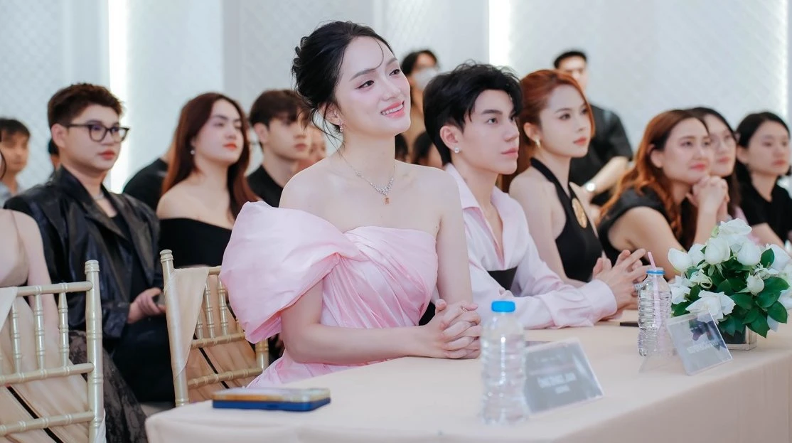 Xuất hiện tại sự kiện, cô nhanh chóng thu hút sự chú ý khi lựa chọn bộ váy hồng pastel trễ vai với phong cách trang nhã.