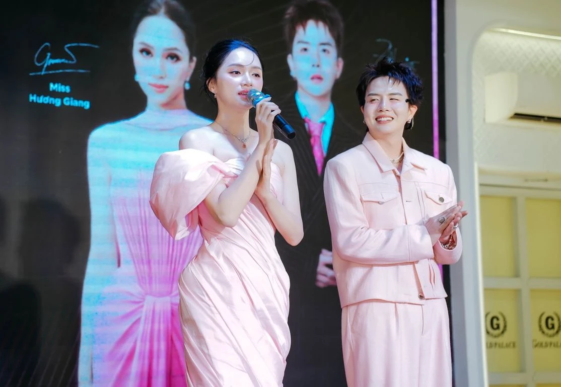 Trong không gian rực rỡ ánh đèn của sự kiện, hình ảnh Hương Giang trở nên nổi bật, tạo cảm giác mềm mại nhưng không kém phần sang trọng. Đồng hành cùng người đẹp là diễn viên Duy Khánh , người chọn phong cách trẻ trung, năng động, phù hợp với hình ảnh quen thuộc.
