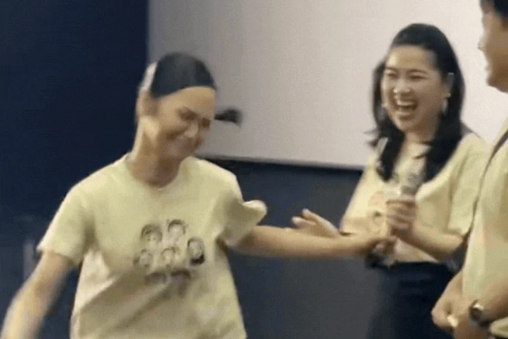 Trong không khí rộn ràng của buổi cinetour, một sự cố hy hữu đã xảy ra khi ê-kíp bộ phim mời khán giả chia sẻ cảm nhận. Một vị khách trẻ tuổi đã không ngần ngại dội "gáo nước lạnh" vào nữ chính khi nhận xét Miu Lê trong các dự án trước đây thường xuyên bị "đơ cứng". Trước ý kiến trực diện này, nữ ca sĩ kiêm diễn viên đã có màn "xịt keo" đúng nghĩa ngay tại chỗ. Cô hài hước phản hồi bằng một gương mặt không cảm xúc để minh họa cho từ "đơ": "Cảm ơn em khen nhưng mà mấy vai trước cũng đơ cứng hả? Là cả quãng đời sự nghiệp bị đơ cứng luôn hả? Cũng có mấy vai hay mà ta?"