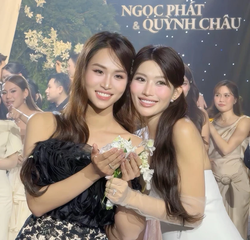Lễ cưới buổi tối tại TP.HCM của Á hậu Quỳnh Châu sau khi hoàn thành các nghi thức truyền thống đã tạo nên một khoảnh khắc bùng nổ không thể bỏ qua: Màn tung hoa cưới được dân tình mòn mỏi mong chờ. Hàng loạt sao nữ đình đám của showbiz Việt như Hoàng Thùy, Lê Hoàng Phương, Bảo Ngọc, Lynk Lee... đều bon chen lên sân khấu, sẵn sàng tranh nhau để bắt được bó hoa may mắn từ Á hậu 1 Miss Grand Vietnam 2022.