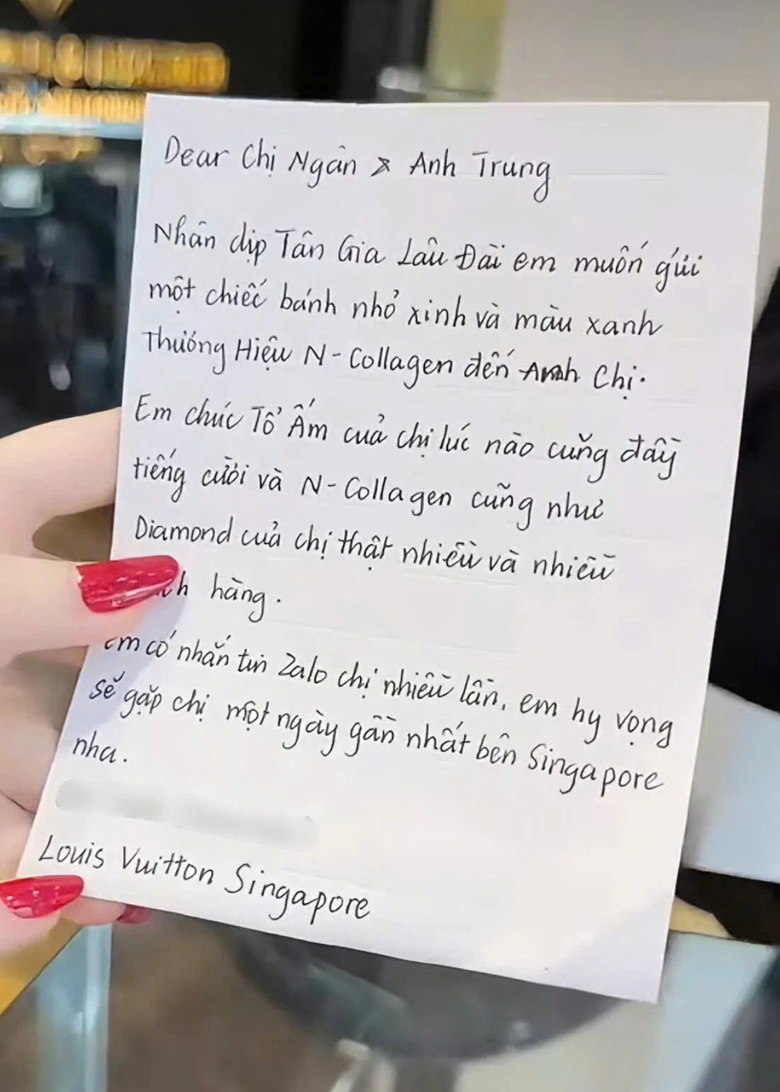 Trong đoạn clip đăng tải, Ngân Collagen giới thiệu lá thư tay được cho là gửi từ chi nhánh Louis Vuitton Singapore. Tuy nhiên, bức thư ngay lập tức bị cộng đồng mạng soi kỹ và nhận xét có nhiều điểm bất thường. Nét chữ nguệch ngoạc, thiếu sự trau chuốt, hoàn toàn không phù hợp với phong cách đẳng cấp thường thấy của một thương hiệu thời trang hàng đầu thế giới.