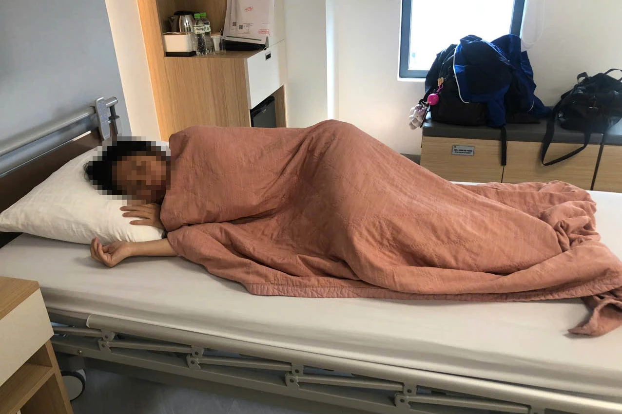 Sau sự việc, chị H. cho biết bản thân có các triệu chứng đau đầu, choáng váng, đau ngực và khó thở. Tuy nhiên, do trong nhà chỉ có hai mẹ con, lo con gái nhỏ ở nhà một mình nên tối hôm đó chị chưa thể đi khám ngay. "Đêm qua tôi hoảng loạn, gần như không ngủ được. Sáng nay tôi phải nhờ người đưa đi bệnh viện", chị H. chia sẻ. Tại bệnh viện, các bác sĩ đã chỉ định chụp CT, X-quang do chị đau nhiều vùng đầu, tai trái và phần thân trên. Chị H. được yêu cầu nhập viện theo dõi vì nghi ngờ chấn thương sọ não.