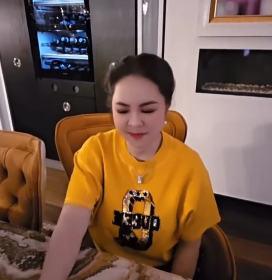 Bà nói: "Tôi hỏi quý vị nè, Đoàn Di Băng bán dung dịch vệ sinh thôi mà sao giàu dữ vậy? Cả nghìn tỷ xây bao nhiêu cái biệt thự. Mỗi chai dung dịch vệ sinh bán nhiêu, đúng không?".