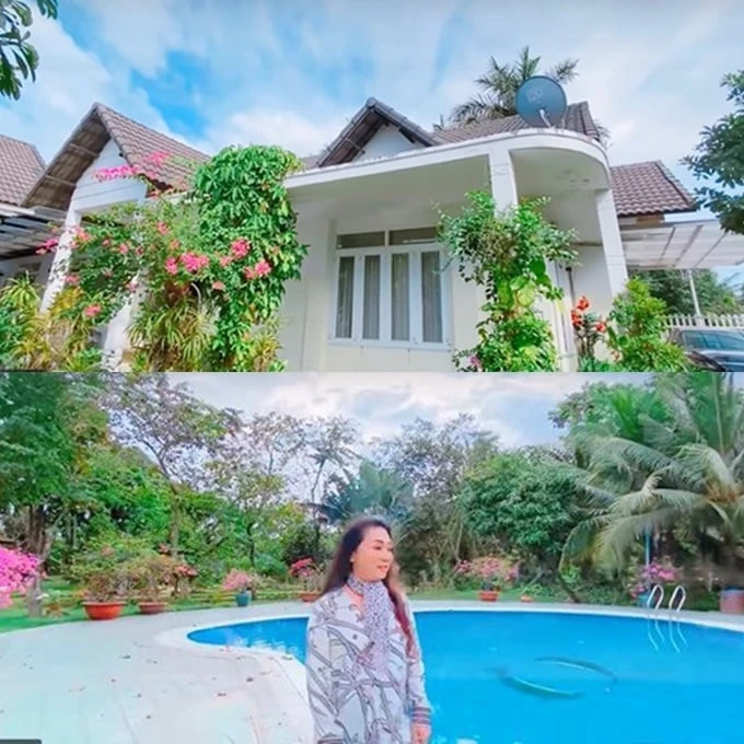 At the age of 80, People's Artist Bach Tuyet is enjoying a serene and comfortable single life in a white villa worth many billions of VND in Thu Duc City. The house was designed by herself in 2015, with a green space and a swimming pool, creating the feeling of a private resort.