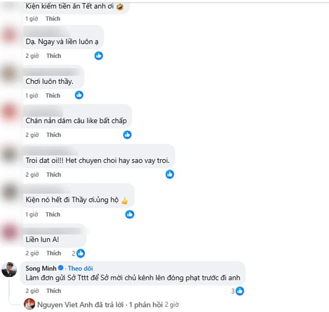 Ngay dưới bài đăng của nghệ sĩ Việt Anh, hàng loạt đồng nghiệp và khán giả đã bày tỏ sự bất bình trước hành vi "khai tử" người sống một cách vô đạo đức. Nhiều ý kiến cho rằng, việc một số cá nhân, tổ chức sẵn sàng dựng chuyện về tính mạng của người khác để kiếm tiền từ quảng cáo và tương tác là một tội ác tinh thần. Điều này không chỉ gây tổn thương cho nghệ sĩ và gia đình họ mà còn làm nhiễu loạn môi trường thông tin, gây hoang mang dư luận xã hội.