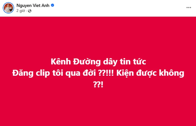 Trước nguy cơ của tin giả, nghệ sĩ Việt Anh đã lập tức lên tiếng trên trang cá nhân để trấn an dư luận và bày tỏ sự phẫn nộ sâu sắc. Nam nghệ sĩ khẳng định ông hoàn toàn khỏe mạnh, không hề gặp bất kỳ vấn đề nghiêm trọng nào về sức khỏe như lời đồn đoán. "Kênh Đường dây tin tức đăng clip tôi qua đời? Kiện được không?", dòng trạng thái ngắn gọn nhưng đầy bức xúc của ông không chỉ là lời phủ nhận mà còn là tín hiệu đanh thép gửi đến những kẻ lợi dụng mạng xã hội để tung tin thất thiệt, xâm phạm nghiêm trọng đến danh dự và nhân phẩm cá nhân.