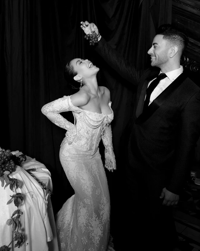 Trong bộ ảnh, Tiên Nguyễn xuất hiện như một nàng dâu quý tộc thực thụ, khoác lên mình những thiết kế váy cưới tinh xảo đến từ các thương hiệu nổi tiếng như Nicole Felicia Couture, Berta và Pallas Couture Privée. Mỗi chiếc váy đều tôn lên vóc dáng thanh lịch, đồng thời thể hiện gu thời trang tinh tế của ái nữ nhà tỷ phú. Trong khi đó, chú rể Justin Cohen gây ấn tượng với bộ suit đen lịch lãm, toát lên vẻ sang trọng và đồng điệu hoàn hảo với cô dâu. Sự kết hợp của cả hai được dân mạng đánh giá là "vừa đẹp đôi vừa hài hòa về phong cách".