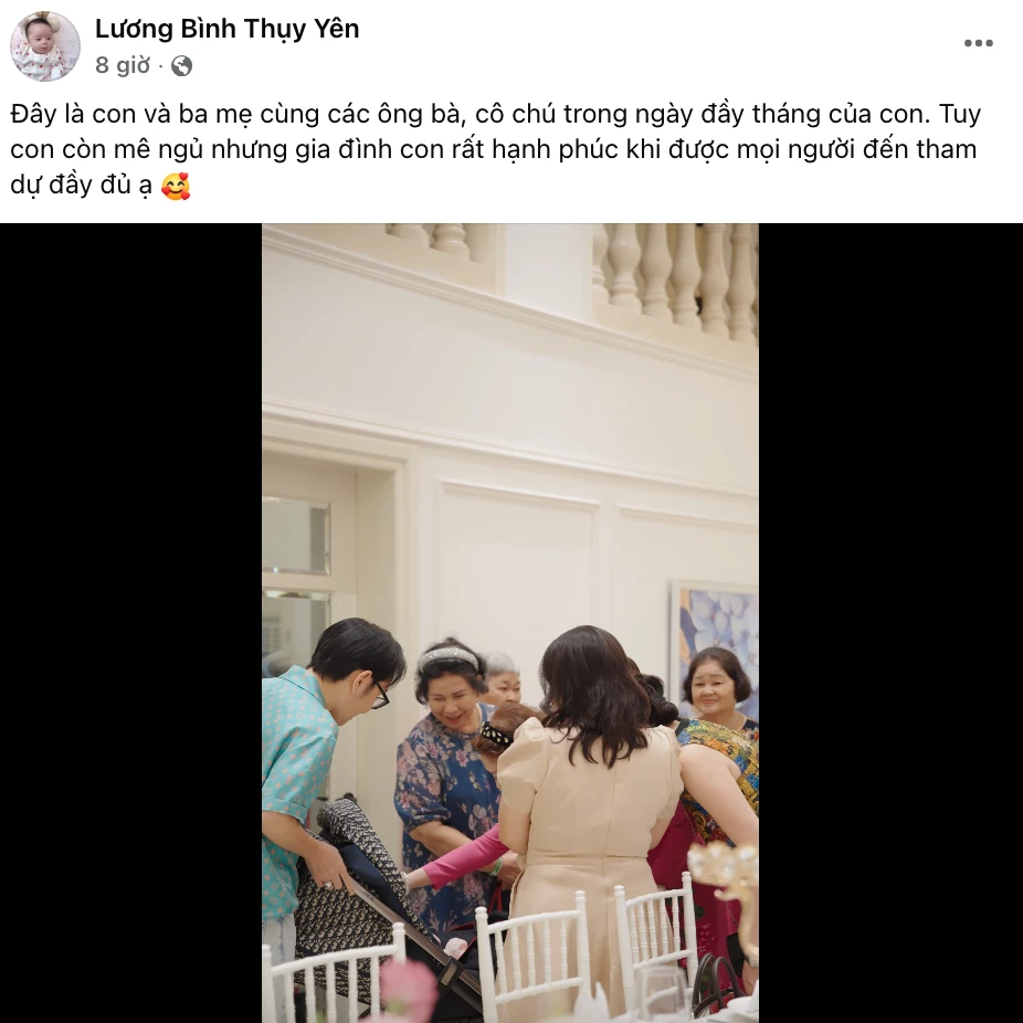 Not stopping at the message, soon after, Phuong Le set up a genuine account for her daughter, posted moments during the full month and called on everyone to follow the right page to avoid misunderstandings. She wrote: "Luong Binh Thuy Yen's page is here for her grandparents and uncles. This is me and my parents and grandparents and uncles on my full moon day. Although I still love to sleep, my family is very happy to be fully attended by everyone."