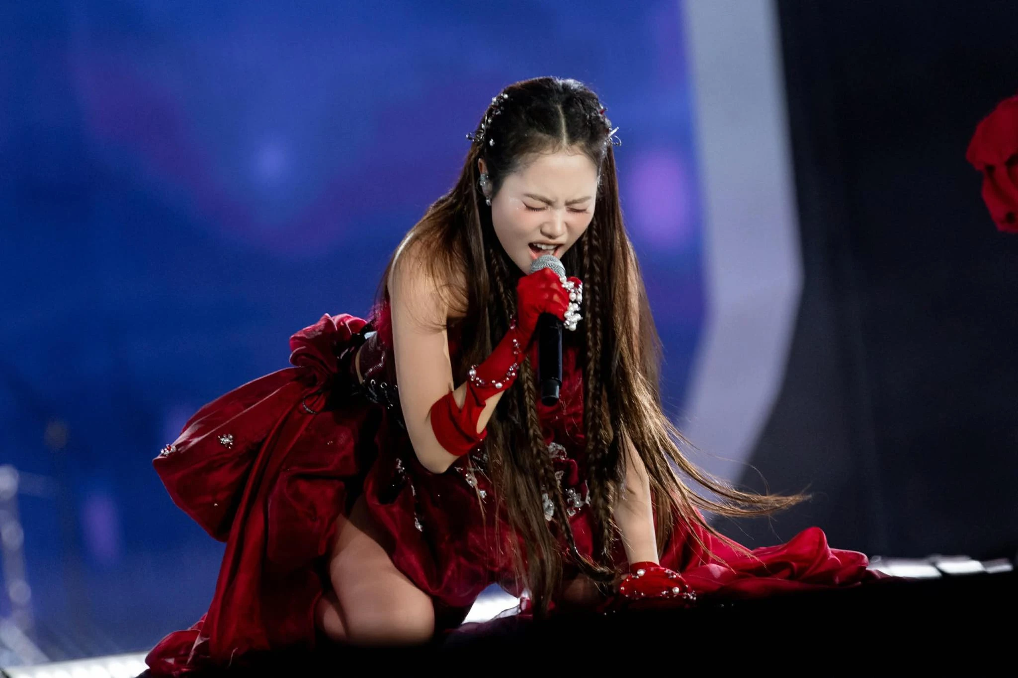 On a grand international stage with dazzling lighting, Phuong My Chi appeared not just as a mere entertainment guest. She delivered two powerful performances, "Chopstick" and "Bai Ca Dat Phuong Nam," creating a perfect blend of contemporary music and the depth of Vietnamese culture. Breaking free from her "child star" image, the singer born in 2003 demonstrated incredible stage presence. Her voice has become increasingly mature, her high notes handled with finesse and power, leaving many international audience members with goosebumps.
