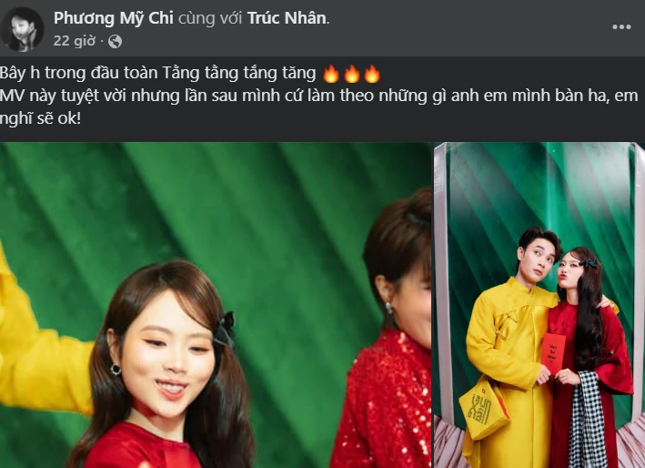 Recently, Phuong My Chi shared behind-the-scenes images when participating in a music product of Truc Nhan, quickly attracting attention on social networks. Accompanied by a series of photos, she humorously reminded her close seniors: "Now in my head it's all quiet" – referring to the melody of the song – "This MV is great, but next time I just follow what my brothers discuss, I think it will be ok!". This funny but intimate message shows the close and comfortable relationship between the two artists during the collaboration.