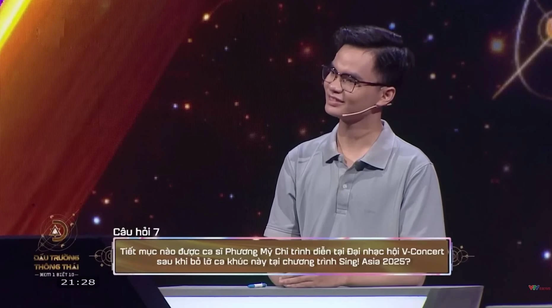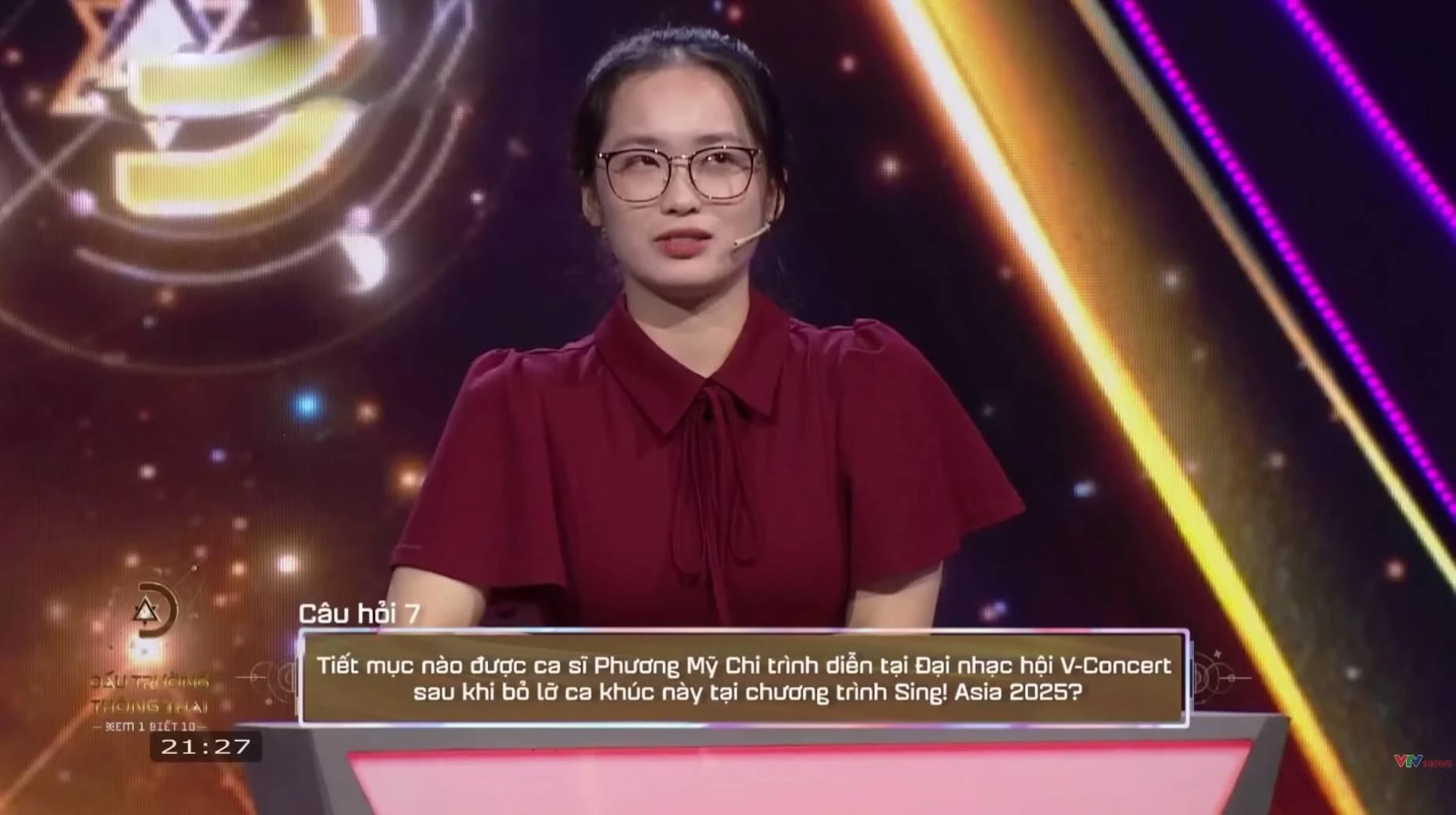 Sức nóng của cuộc thi Sing! Asia 2025 bất ngờ được khơi lại gần đây, sau khi một chương trình truyền hình về kiến thức tổng hợp đưa ra câu hỏi liên quan đến phần thi của Phương Mỹ Chi. Cụ thể, câu hỏi yêu cầu người chơi xác định ca khúc cô đã trình diễn tại V Concert được xem là "bù đắp" cho màn biểu diễn bị bỏ lỡ ở đêm Chung kết Sing! Asia 2025.