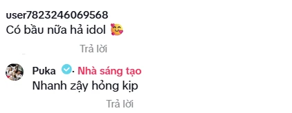 In the comments section, a question appeared and quickly attracted attention: "Are you pregnant again, idol?". This blunt way of posing the question reflects the familiar curiosity of social media, where every small detail can become a signal for a big theory. Instead of remaining silent or ignoring it, Puka chose to respond directly with four words: "That's too fast, I didn't have time."