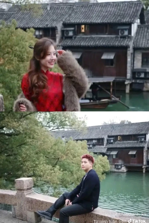 Recently, the online community was abuzz again when it was discovered that Quân AP and Lê Khanh checked in at the same tourist destination in China. Although they didn't post photos together to avoid attention, "internet detectives" quickly spotted matching details in the settings of both photos.