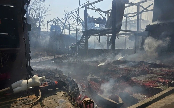 Around 9:30 AM on February 22nd (the 6th day of the Lunar New Year), while people were still happily enjoying the last days of the holiday, a thick column of black smoke suddenly rose from the "Nha Ben Suoi" (House by the Stream) cafe located deep in an alley off Linh Dong Street, Thu Duc City. According to witnesses at the scene, the fire broke out fiercely in the beverage preparation area, then quickly engulfed the decorative displays.