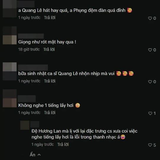 Hàng ngàn bình luận không tiếc lời khen ngợi dành cho anh. Sự lan truyền của đoạn video ngẫu hứng này một lần nữa khẳng định: Đẳng cấp của một ngôi sao không nằm ở quy mô sân khấu họ đứng, mà nằm ở cách họ tỏa sáng ngay cả trong bóng tối. Quang Lê không cần phô trương, không cần những chiêu trò truyền thông rầm rộ. Anh chinh phục công chúng bằng chính sự chân thành và nội lực từ sâu bên trong huyết quản.