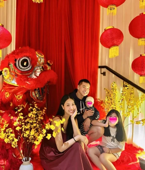 On her personal page, Tang Khanh Chi recently shared some emotional thoughts about her husband's absence. She reposted an old family photo from last Tet (Lunar New Year) with the caption: "This year, Dad Cutin was busy working, so we couldn't have a Tet photo with him. Posting an old photo to create some atmosphere. Happy New Year everyone."