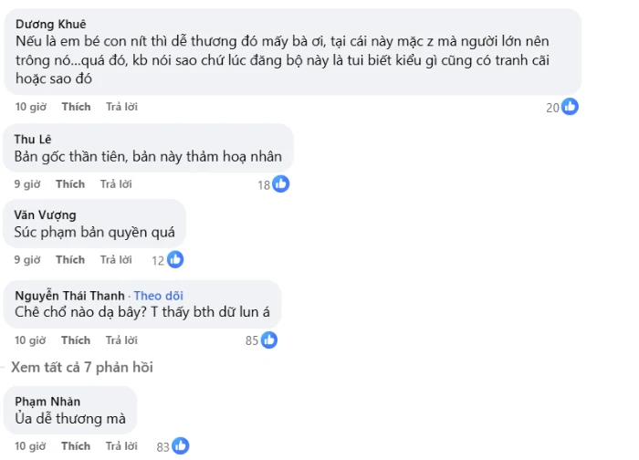 On social media platforms, the audience's reactions are divided into many streams. Some typical comments are: "This is true again: have fun, but don't have too much fun!", "I knew it. From the moment I saw the photo series, I thought it was sick", "What's the criticism? I think it's normal", "The original is a fairy, this version is a disaster", or "If it was a baby, it would be cute, because adults dress like that, so it looks... too much".