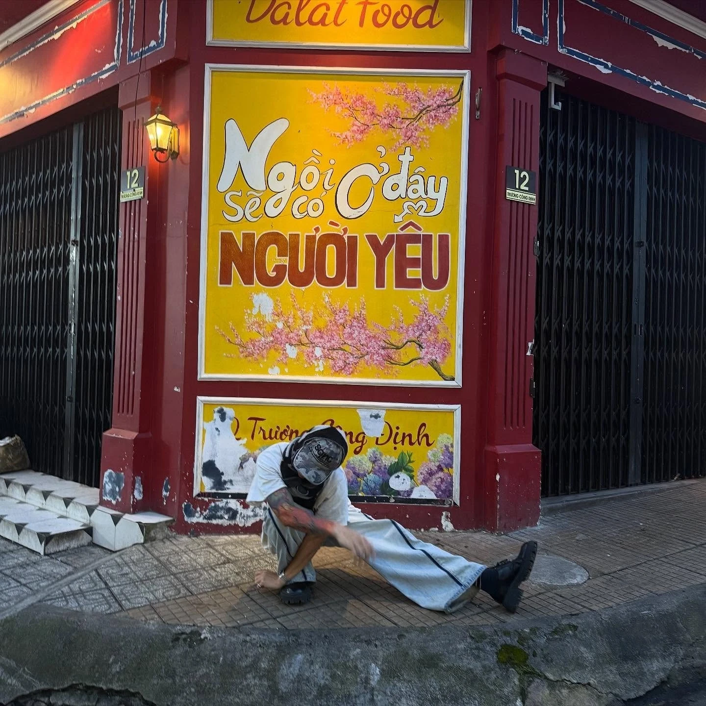 The highlight of the series of photos is also the picture of MCK sitting on the sidewalk, behind him is a bright yellow wall with the words "Sitting here will have a lover". Although there is no caption, this detail alone is enough for the audience to imagine the love relationship that the rapper wants to convey.