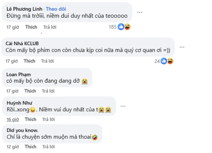 Phản ứng của cư dân mạng cũng đa dạng không kém. Một bộ phận người dùng thể hiện sự tiếc nuối, thậm chí hài hước hóa tình huống bằng những bình luận như "Đừng mà trời, niềm vui duy nhất của teooooo", "Còn mấy bộ phim con còn chưa kịp coi nữa mà quý cơ quan ơi", hay "Cháu còn 2 tập phim, các chú có thể từ từ đc hem". Một số khác lại bày tỏ sự lo lắng về khả năng mất đi một nguồn giải trí quen thuộc, dù biết rõ rằng nền tảng này không hợp pháp.