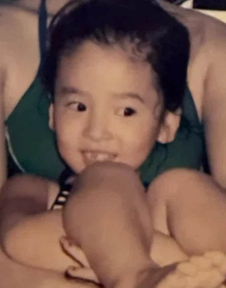 Điểm đặc biệt trong bộ ảnh chính là cách Song Hye Kyo đặt cạnh nhau hình ảnh thời thơ ấu và hiện tại, tạo nên một dòng chảy thời gian liền mạch. Ở những bức ảnh cũ, nữ diễn viên xuất hiện với dáng vẻ của một cô bé khoảng từ 4 đến 7 tuổi, đang trong giai đoạn thay răng, mất răng cửa. Gương mặt non nớt, nụ cười hồn nhiên và ánh mắt trong veo ghi lại khoảnh khắc rất đỗi tự nhiên của một đứa trẻ đang lớn. Dù chưa bước chân vào làng giải trí, nét trong trẻo ấy dường như đã phần nào hé lộ vẻ đẹp thuần khiết mà khán giả sau này luôn nhận ra ở Song Hye Kyo.