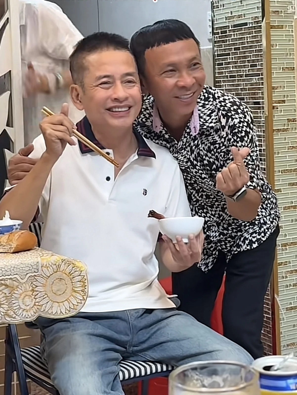 Ở tuổi 60, Tấn Beo đã trải qua nhiều thăng trầm trong sự nghiệp lẫn đời sống cá nhân. Gương mặt ông hiện rõ sự mệt mỏi, quầng thâm sâu cho thấy sức khỏe không còn sung mãn như trước. Thế nhưng, giữa vòng tay yêu thương của gia đình, bạn bè và đồng nghiệp, ông vẫn cố gắng nở nụ cười, chụp ảnh kỷ niệm để lưu giữ khoảnh khắc đặc biệt này. Hình ảnh ấy vừa khiến khán giả thương cảm, vừa khơi gợi sự trân trọng dành cho một nghệ sĩ đã cống hiến cả đời cho sân khấu.