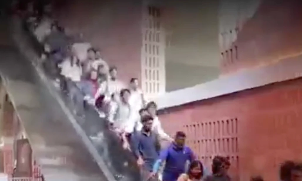 Theo đoạn video được chia sẻ trên mạng xã hội, không khí lúc đó vô cùng căng thẳng. Tiếng la hét vang lên khi nhiều sinh viên không thể đứng vững. Một số người cúi gập người, số khác bám chặt vào thành thang, cố gắng không bị trượt ngã theo đà tăng tốc.