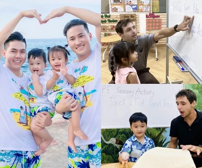 Thanh Đoàn - Hà Trí Quang "theo sát" cặp song sinh tại trường quốc tế
