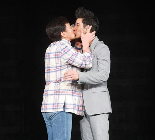 At Wang Luc Hoanh's concert in Shenzhen, the appearance of guest Jackie Chan caused a stir. Although the program was very successful, the action of the martial arts superstar when forcibly kissing a man who was his child's age was greatly outraged.