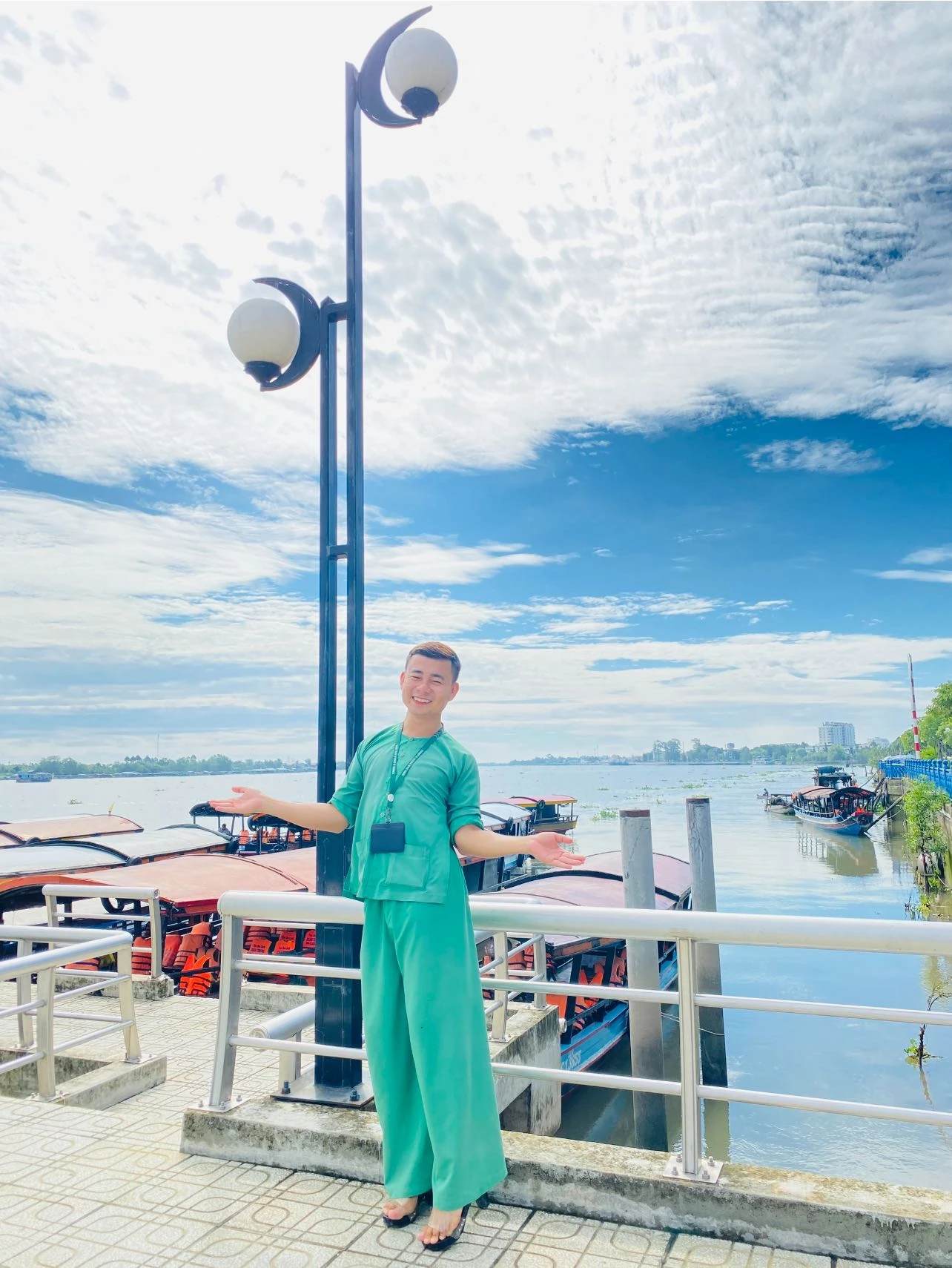 Before becoming known as a movie star, Thuy Lieu was a tour guide. His work, which involved trips and stories told to tourists, helped him hone his communication skills, confidence, and rich life experience. His approachability and sincerity in speaking made many people love him since he was a tour guide. Many tourists, after their trip, forever remembered the image of a simple young man in a traditional Vietnamese outfit, enthusiastic and full of energy.