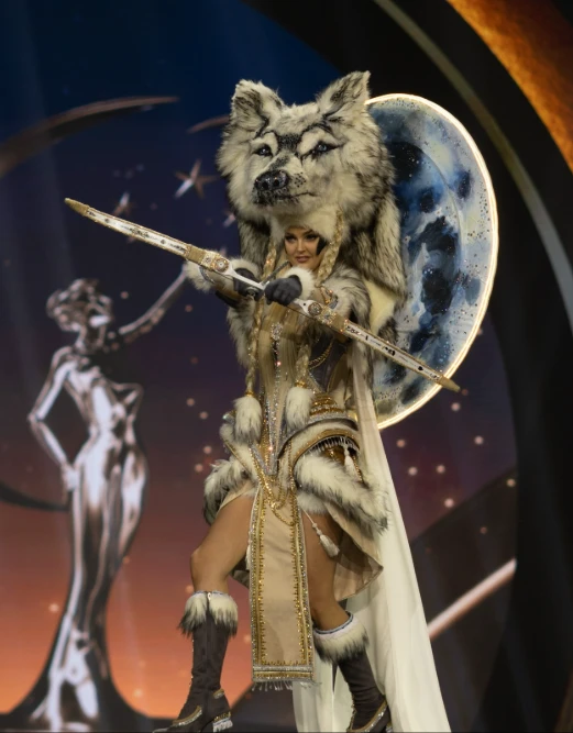 The contestant from the Republic of Estonia brought a unique national costume, inspired by the image of a wolf. This design shows bravery and wildness, completely different from the usual feminine costumes.