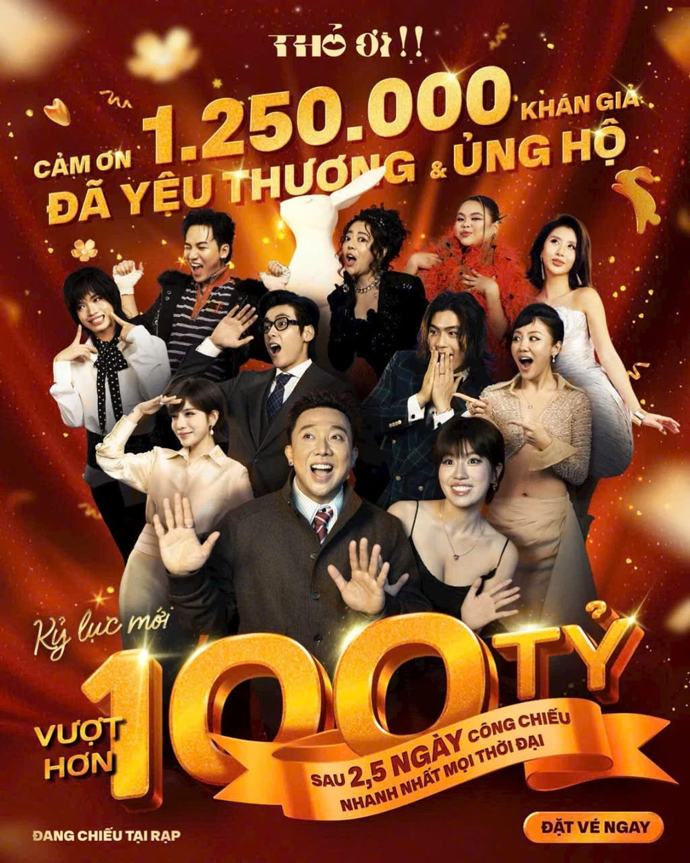 Tính đến 10 giờ 30 sáng ngày 23/2, theo số liệu từ đơn vị quan sát độc lập Box Office Vietnam, Thỏ Ơi! đã chính thức vượt ngưỡng 250 tỷ đồng. Đây là một con số "biết nói", minh chứng cho sức hút khủng khiếp của thương hiệu Trấn Thành khi phim chỉ mới ra rạp vỏn vẹn một tuần. Trước đó, tác phẩm cũng xác lập cột mốc 200 tỷ chỉ sau 5 ngày công chiếu.