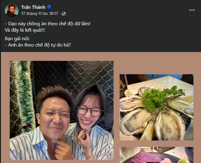 Đặc biệt, dòng trạng thái "Đưa bạn gái đi ăn tối" đã khiến người hâm mộ "rần rần" bởi cách Trấn Thành gọi vợ đầy trìu mến và trẻ trung. Khán giả nhận xét rằng chỉ một câu ngắn ngủi cũng đủ thấy tình cảm bền chặt, sự trân trọng mà Trấn Thành dành cho Hari Won sau nhiều năm kết hôn. Fan nhận định đây chính là điểm khiến mối quan hệ của họ luôn được công chúng ngưỡng mộ: giản dị, chân thành và ngọt ngào.