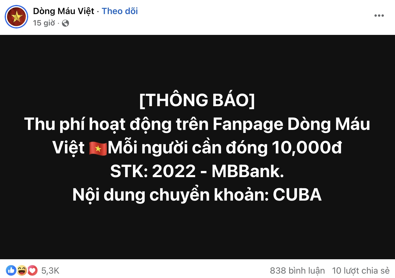 In recent days, when surfing Facebook, it is not difficult to come across posts with initially confusing content: "Charging fanpage/group operation fee, 10,000/year" with account number and transfer instructions. Many Facebook users initially thought this was an illegal form of collecting money, but in fact, this is how many fanpages and community groups call for support for the program "65 years of Vietnam - Cuba friendship".