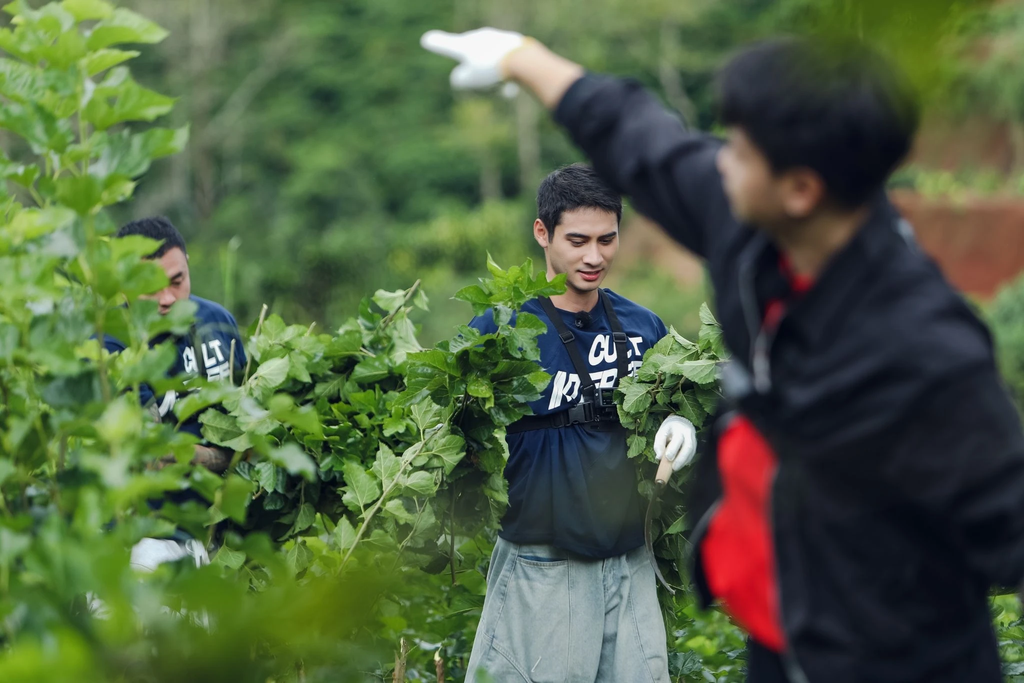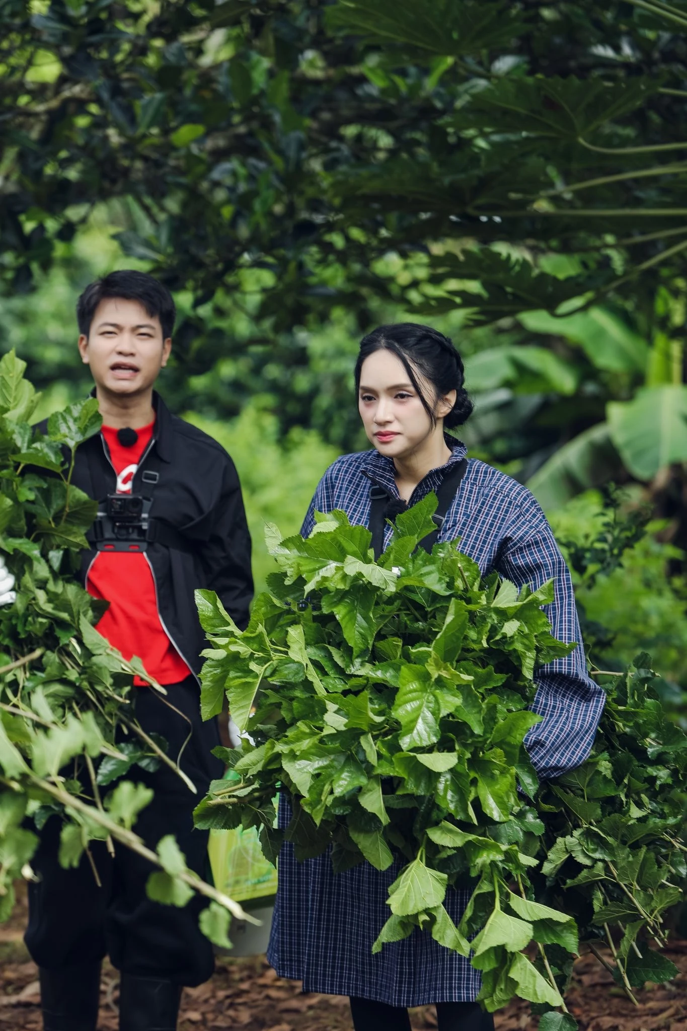 After breakfast, the cast moved to the village head's house to begin their silkworm farming activities in the mulberry garden. Most of the members were thrilled to be able to personally prepare and cut mulberry trees for the first time, as well as meticulously prepare the steps for feeding the silkworms. Even more special, at the village head's house, the new neighbors were also given a "new lesson" about silkworm farming and were surprised by the hard work involved in this traditional craft.